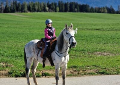 - Altersbeschränkungen: Das Mindestalter für das Reiten liegt bei 5 Jahren (an der Hand geführt). Das Mindestalter für das selbstständige Reiten beträgt 10 Jahre, je nach Reiterfahrung und Fähigkeit kann dies in Ausnahmefällen herabgesenkt werden.