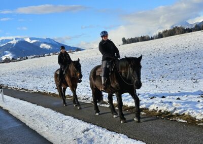 - Wetterbedingungen: Informieren Sie sich über Wettervorhersagen und kleiden Sie sich entsprechend. Wir können Ausritte aufgrund unsicherer Wetterbedingungen stornieren oder verschieben.